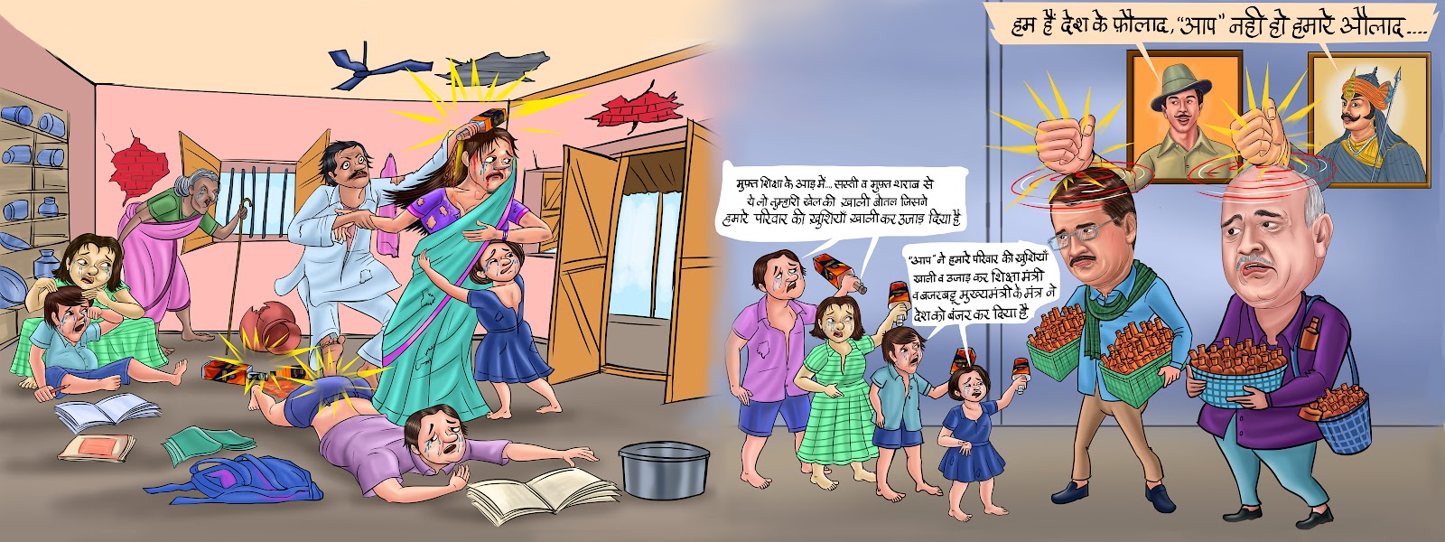शराब - ए - आज़म उर्फ़ पैसा हज़म टोली कोरोनावाल आया एक बोतल शराब पर दूसरा बोतल मुफ़्त दिया.. सिसोदिया ने शिक्षा के आड़ में बच्चों के घरों में सिसकियाँ पहुँचायी..